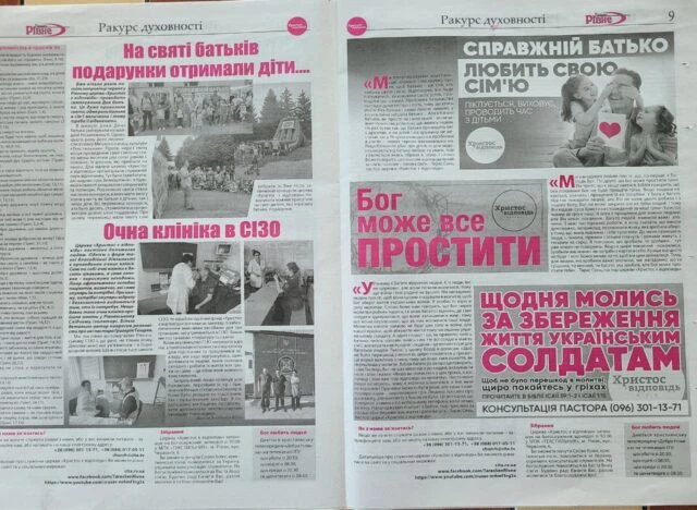 На чотирьох сторінках формату А-3 розміщуються новини про благодійність та християнські євангелізаційні заходи. Даний розділ містить статті та роздуми про молитву, Біблію і про любов та справедливість Божу. Окрім цього, має матеріали про видатних людей, які були або є переконаними християнами.