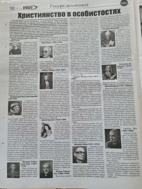 В новій рубриці «Ракурс духовності» газета почала публікувати новини про діяльність церкви «Христос є відповідь» та інших церков міста Рівне. Також матеріали про духовні та моральні закони.