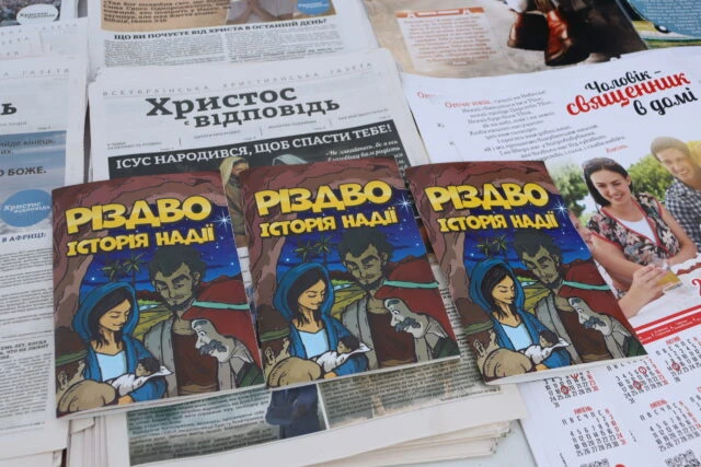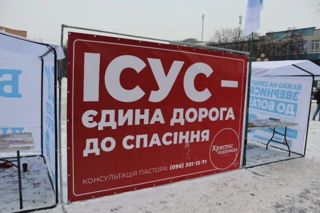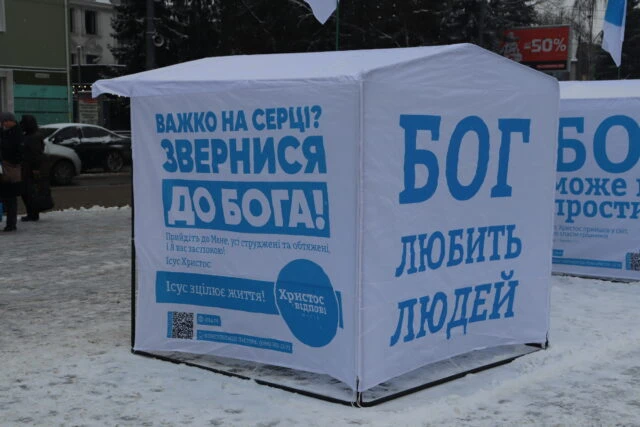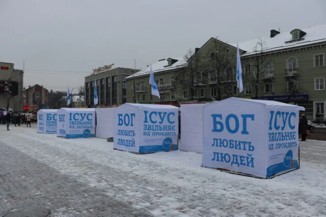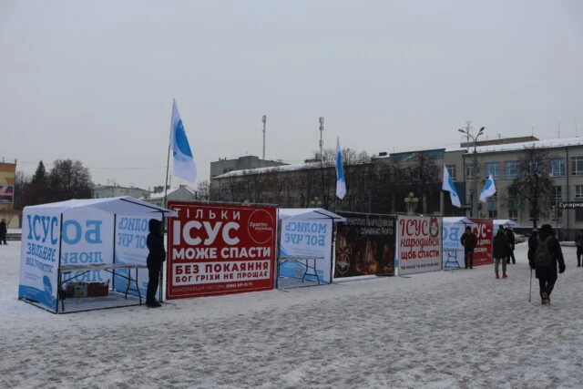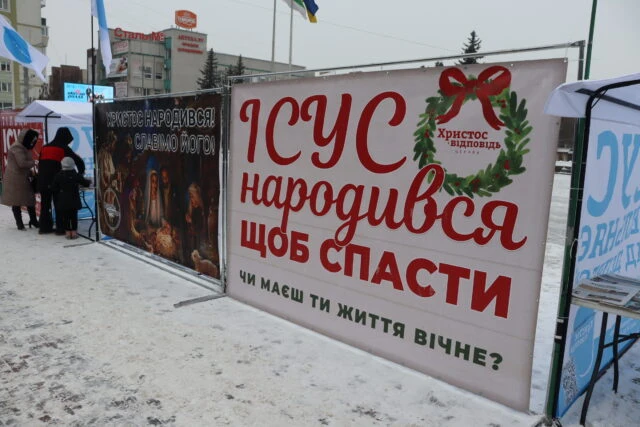 24 грудня місіонери та служителі розмістили на площі 4 білборди та 4 намети, які нагадують людям одвічні біблійні істини. Люди з радістю підходять і беруть християнські газети, календарі та іншу літературу, яку тут поширюють безкоштовно.