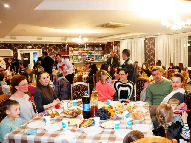Щодня жінки старанно трудяться для того, щоб їхнім рідним було комфортно жити. Так само, як і служіння, людям потрібні відпочинок і час проведений з родиною, друзями. А той, хто працює, в першу чергу гідний відпочинку, щоб духовно і фізично оновитися. Тому після основної частини служіння гості перемістилися у святково прибране кафе, де за смачною вечерею змогли продовжити спілкування.