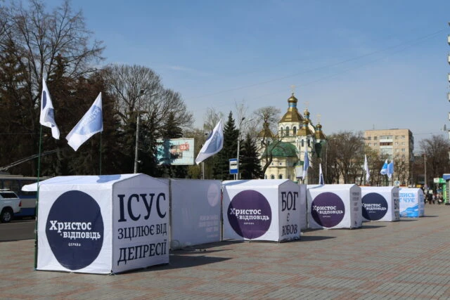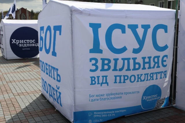 «The church is actively engaged in preaching the Gospel. And these days, with the help of banners, we try to convey to people the message that Jesus Christ is our Savior. We pray that many will open their hearts to a living faith in Jesus, be spiritually reborn, be forgiven, saved, and blessed.» – Taras Sen, pastor of the «Christ is the Answer» church.