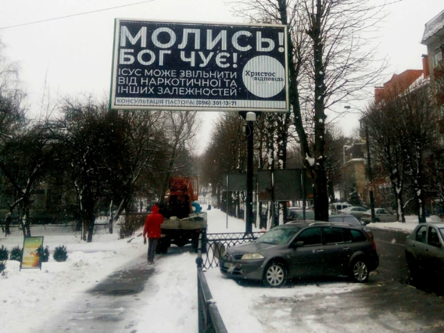 The city of Rivne was once again decorated with billboards with christian slogans about salvation.