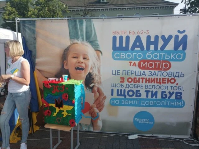Команда церкви «Христос есть ответ» поставила свои палатки и борды с духовно-познавательными надписями. Собравшихся угощали сладкой ватой и попкорном. Утверждения на бордах и палатках, которые могли видеть сотни людей, напоминали о вечных семейных ценностях: «Настоящий отец любит свою семью. Заботится, воспитывает, проводит время с детьми»; «Почитай своего отца и мать – это первая заповедь с обетованием, чтобы хорошо велось тебе, и чтобы ты был на земле многолетний!» (Библия, Послание к Ефесянам 6:2-3).